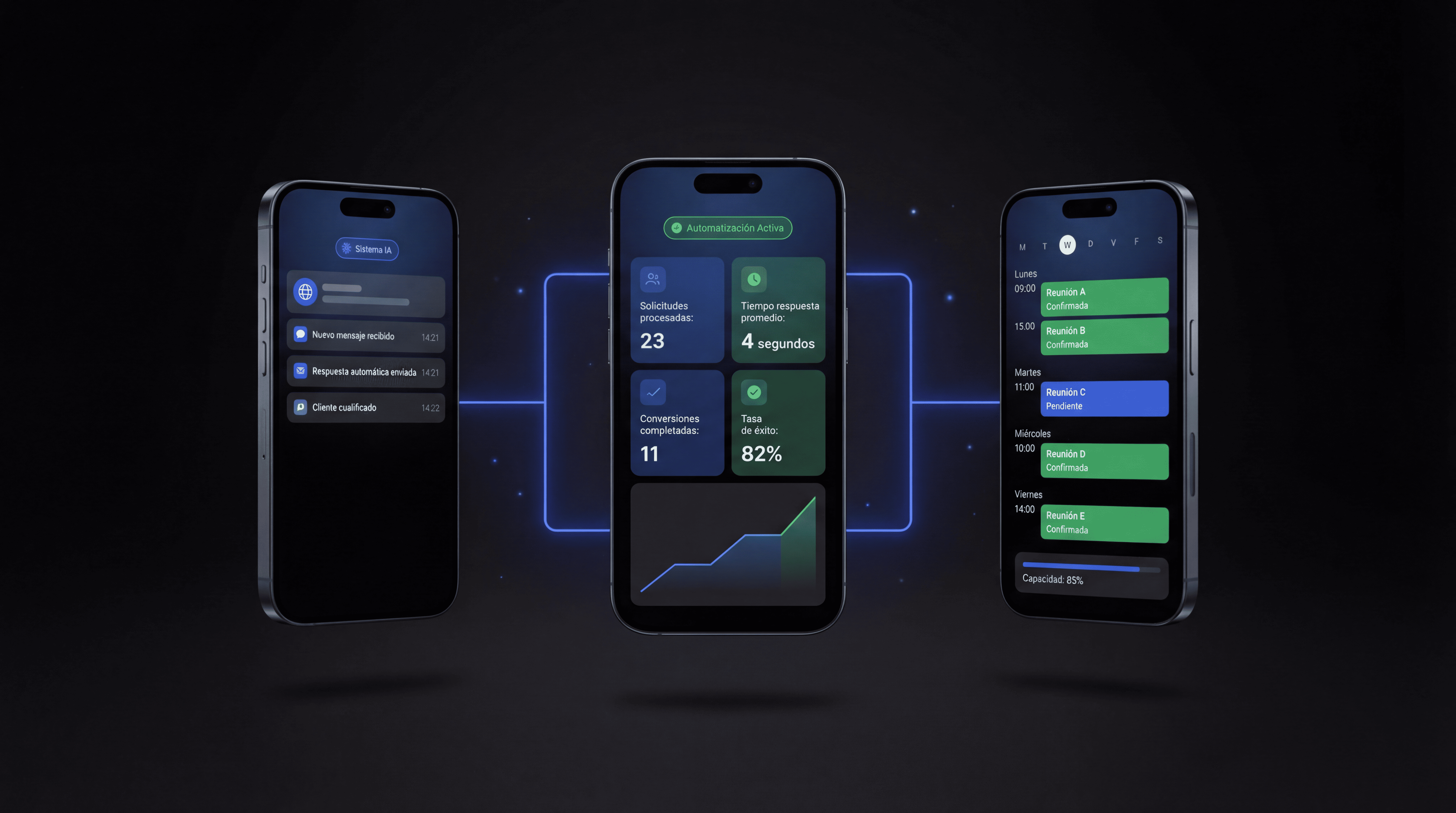 Infraestructura que captura, cualifica y agenda sin tocar el teléfono. Filtrado inteligente, no chatbot genérico.